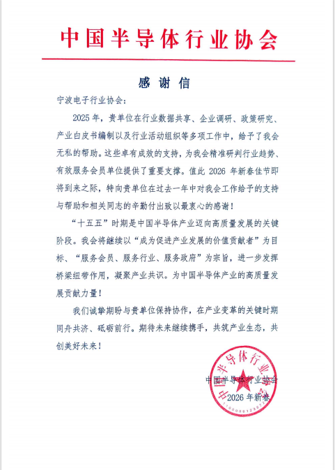 中国半导体行业协会发来感谢信